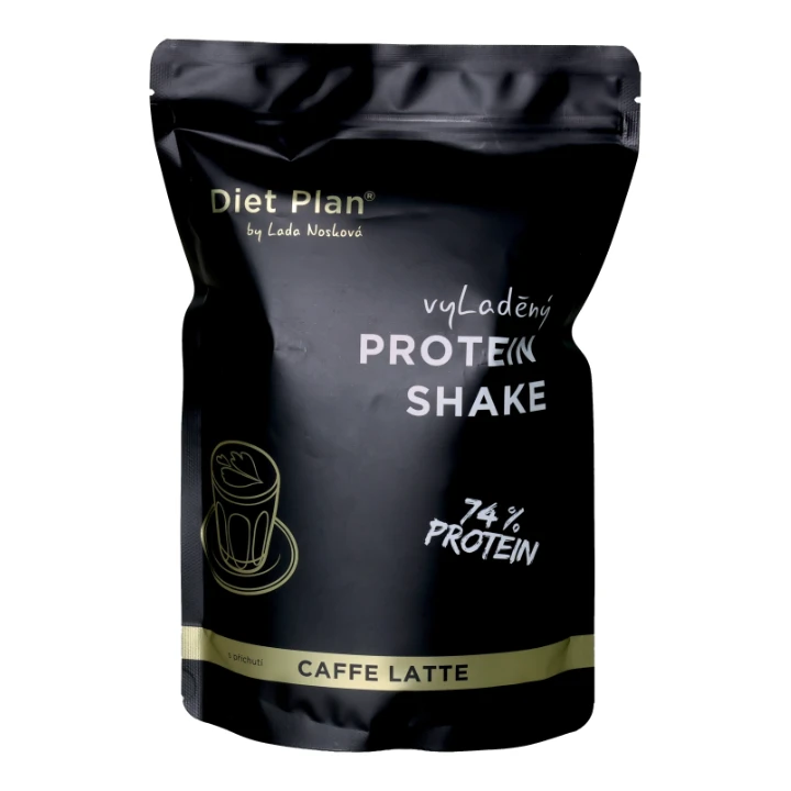Nápoj s vysokým obsahem bílkovin s příchutí caffe latte, se sladidly přírodního původu z rostliny stévie.