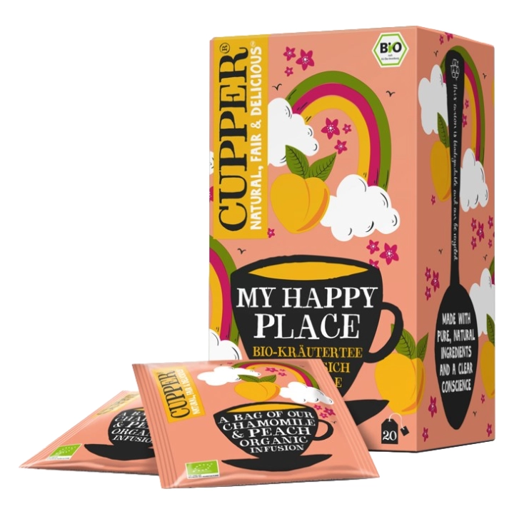 Objevte harmonii bylin a ovoce v našem bio broskvovém čaji. Není nic lepšího než si dopřát malou pauzu, být sám se sebou a vychutnat si u toho šálek čaje. Čaj My Happy Place je ztělesněním relaxace, štěstí a požitku. Harmonická směs kombinuje lahodnou sladkost broskví s uklidňujícími účinky heřmánku a vytváří nápoj, který promění každý okamžik v požitek.