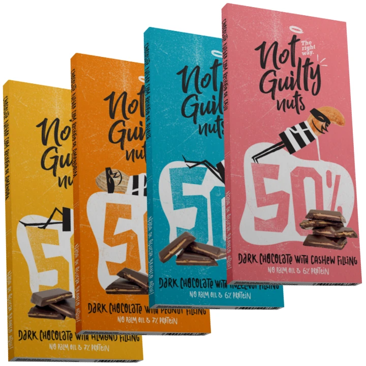 Not Guilty („Bez viny“) je čokoládová řada vytvořená s myšlenkou nabídnout skutečnou chuť čokolády – bez zbytečností. Produkty neobsahují přidaný cukr, palmový olej ani vanilku, aby vynikla čistá, autentická chuť kakaa. Zachovávají plnou chuť s nižším glykemickým dopadem.