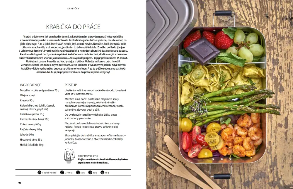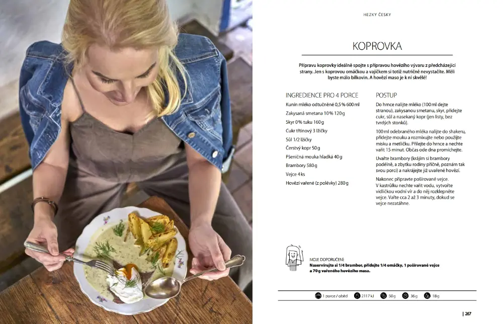 A na čem si pochutnáte? Čeká vás celá sekce Snídaní, sladkých i slaných. Takových, že vaše děti budou prosit o porci navíc. Pokud není maso vaše parketa, myslela jsem na to. V kuchařce je pro vás celá sekce. Že potřebujete udělat oběd nebo večeři šup šup? Já taky :-) Proto budete hledat v kapitole Rychle a zběsile. A jídlo bude na stole do 20 minut. Že taky rádi mlsáte? Jsme stejná parta. Tahle kapitola Ke kávičce vás bude bavit. Lado a co česká kuchyně? Ale jistě! Budete koukat jaké fajnovky v kuchařce najdete. Saláty jsou tam taky, jasná věc, ale nebojte, není jich mnoho. Sekce Ryby je výjimečná především tím, kde jsme ji fotili. A myslím, že z fotek budete slintat :-) Z čeho mám fakt radost je kapitola Krabičky. Nosit si jídlo do práce je věčný problém. S novou kuchařkou už to máte vyřešené. No a Svačiny jsou taky důležité a že jich je. A co párty? Je v hubnutí prostor pro oslavu? To si pište, že je. Máte se na co těšit...