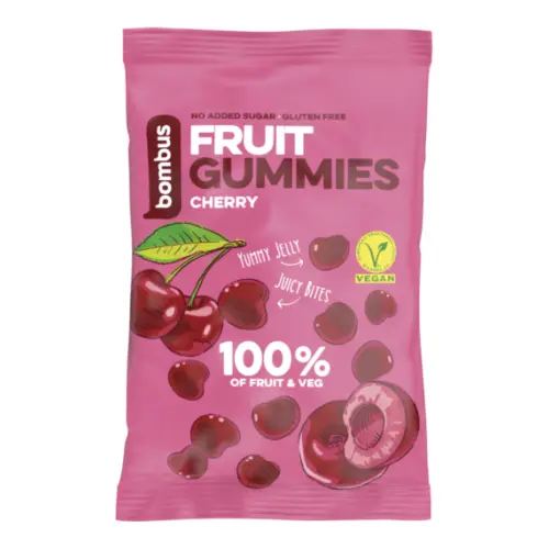 Neodolatelné třešňové gummies vás dostanou svou vůní a svěží ovocnou chutí! Obsahují 100 % ovocné složky a šťávu z černé mrkve. Jsou bez přidaného cukru, barviv a konzervantů a jsou zdravou alternativou přeslazených cukrovinek.
