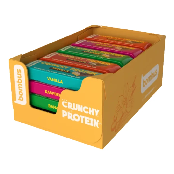Mix vícevrstvých crunchy proteinových tyčinek v mléčné čokoládě, s nízkým obsahem cukru a extra křupavostí.