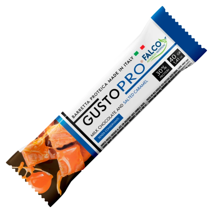 Unikátní křupavá proteinová tyčinka z prémiové mléčné čokolády se slaným karamelem, která se nerozpustí. Obsahuje 30% proteinu. Složením a velikostí vhodná jako odpolední svačinka.